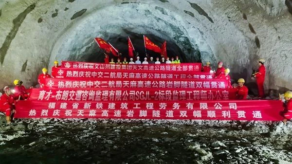 近日,隨著云南天麻高速公路重點(diǎn)控制性工程——全線最長隧道巖腳隧道雙幅貫通,標(biāo)志著天麻高速所有隧道全線貫通。